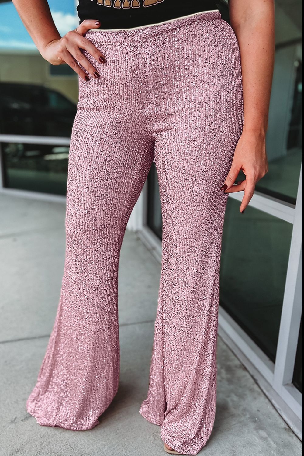 Plus Size Sequin Wide Leg Pants